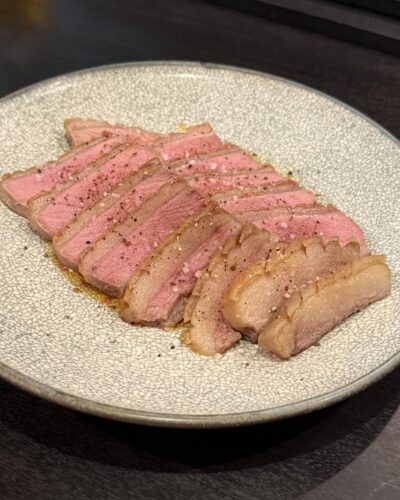 出来上がったお肉の色が食欲をそそってきます~!頂いてみるとこれまた美味しい~!脂がとっても甘みがあって最高!