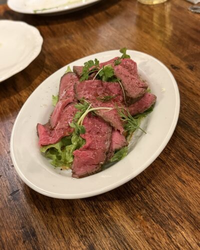 メニューで気になったローストビーフをお願いしました。以前も頼んだことがあったような気が。そうそう!このボリューム!いただいてみるとめっちゃめちゃ美味しい~!