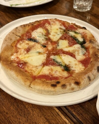 最後はピザをいただくことに!まずはマルゲリータをお願いしました!チーズもトマトソースもたっぷりで美味しそう~!やっぱりピザはマルゲリータが好きですね~!