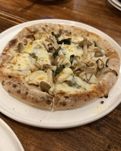 美味しかったのでもう一枚お願いしました!キノコのピザです。たっぷりキノコが入っていてこちらもとっても美味しい~!マルゲリータよりもあっさりいただけました。
