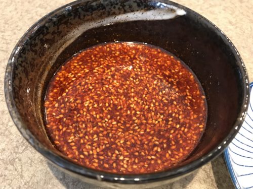 つけ汁が登場しました~!大辛にしているので他の友人より赤みがかっていますね~笑!しっかり混ぜていただきます。しっかり混ぜないと辛味成分と出汁の成分が分離しちゃいますよ~。