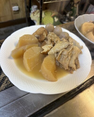 続いておでんをいただきます。なんとはら皮を炊いてくれていました!はら皮めっちゃ美味しんですよ~!いただいてみるといい味してる~!きっちり味がしみていました!最高!