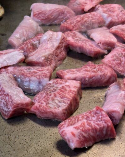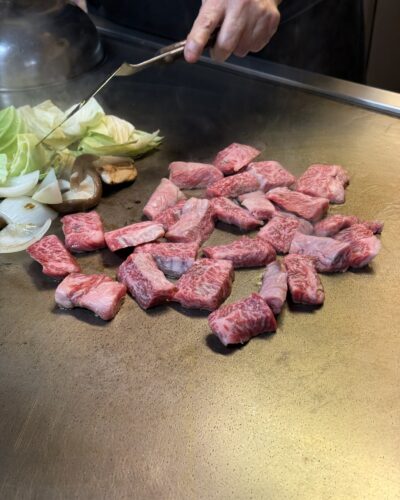 今度は鉄板で和牛のハラミの部分を焼いてくださいました!