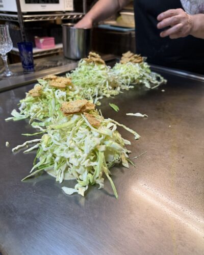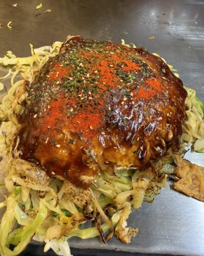 もう止まらなくなってしまって一人一枚ずつお好み焼きをお願いすることに(笑)