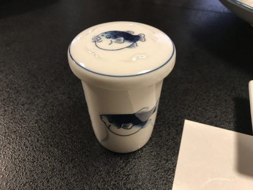 席につくとおそらくふぐのお店なんだろうな~とわかりました。セットされているポン酢やもみじおろしやねぎなどで!笑