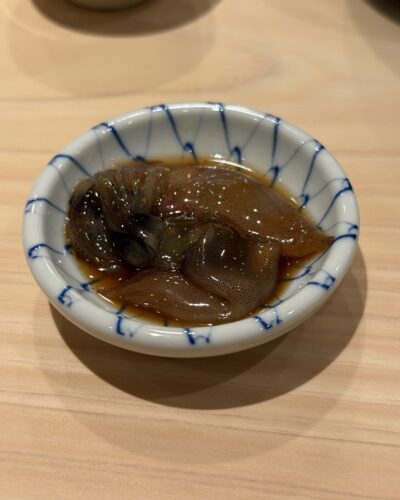 まずは身からいただきます。ほどよい食感と磯の香りが最高ですね~!紐も美味しい~!
