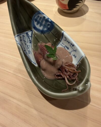 まずは剣先イカの酢味噌和えからいただきます。めちゃうまですね!
