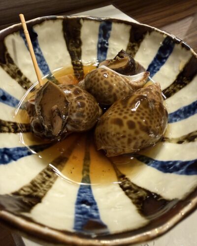 この日の日替わりメニューを確認してまずはバイ貝からいただきます。結構いいサイズのばい貝ですね~!つまようじで上手にとることができました!めちゃくちゃ美味しい~!
