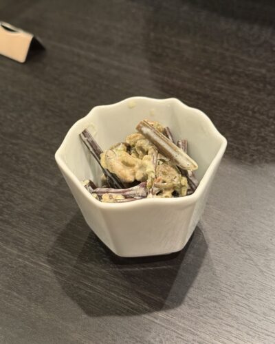 先に先付のぜんまいのヨーグルト和えをいただきます。スパイスきいていて美味しい~!
