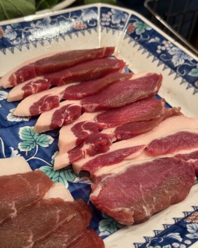 前回ご紹介したトーマスとサカバさんに伺った際にとっても美味しいイノシシ肉を食べさせてもらいました。江田島の吉岡さんという方が獲られたイノシシです。本当に美味しかったのでついついしゃぶさしゃぶでも食べてみたいな~と(笑)