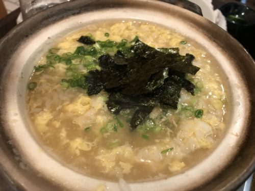 最後はもちろんメバル雑炊!ほっぺたはすでにおちてどっかにいってしまっていたので、もう落とすものがないくらいです!赤だし飲みながら雑炊!これ、最強!