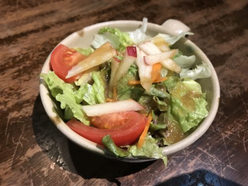 セットにしたのでまずはサラダが登場しました!このサラダがとってもおいしい~!リンゴのスライスなどもきちんと入っていて手をしっかりかけてくれています。