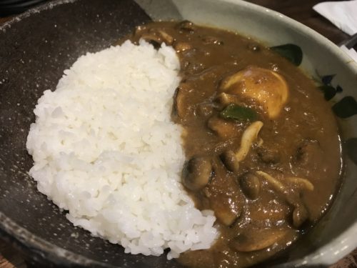 まずは一緒に行った方の中間のキノコカレーが登場しました!いい香りがしますね~!たっぷりきのこが入っていましたよ~!