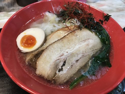 そこにまずは塩ラーメン全部のせが登場しました~!チャーシューが大きい!そしてスープがすんでいる~!美しいスープですね~!
