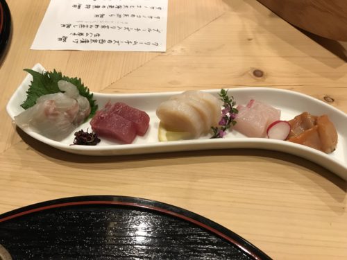 お刺身は5種盛りにしてもらいました。まぐろ、たいらぎ、鯛、カンパチ、赤貝でした~!どれもとってもおいしいですね~!赤貝なんてとっても甘かったです~!カンパチも超おいしい~!