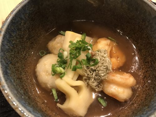 続いておもちのおろし煮をお願いしました。ポン酢仕立てにするか選べたのでポン酢で!これがとってもおいしくて子供が一人で全部食べてしまうほどでした~!とってもおいしいって!一つだけわけてもらいましたが、確かにおいしい~!