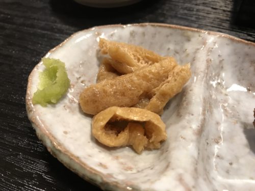 食べ終わったらさっと油揚げを出してくださいました。これがまたわさびといただくとおいしい~!日本酒がすすみますね~!