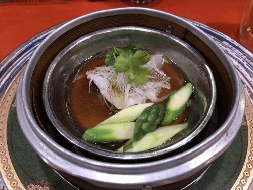 蒸し料理が登場しました。なんとあこうの香港蒸し!