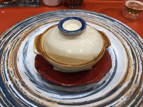 次がこれまたびっくり!ふかひれが入っています!卵白のウニ蒸しだそうです!中には乾燥させた山芋が入っていました。食感もよくてとってもおいしい~!最高ですね~!