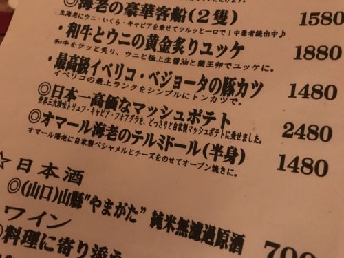球場で飲んでいたこともありまずはチューハイからスタート!本日のおすすめをみてみると、、おや?日本一高価なマッシュポテト?!これは頼んでみたいですね~!超気になります!しかも食べ比べたいので普通のマッシュポテトもお願いしました。