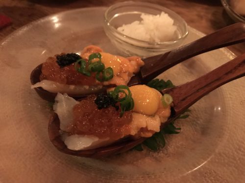 続いて以前誕生日のお祝いでいただいた豪華客船が!海老の上にウニやキャビア、いくらがのっています~!これがめっちゃあうんですよ~!そもそも海老がおいしい~!他では味わえない豪快で豪華な一品です!