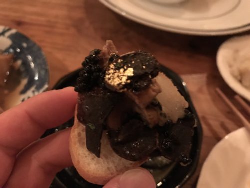 マッシュポテトの上になんとフォアグラ、トリュフ、キャビア、さらには金箔という超がつく豪華三大珍味がのっています!いただいてみると、うわ~!あまり食べることがないので何の味なのかわかりませんでしたが、とにかく豪華!主役が口の中で暴れていました~!笑
