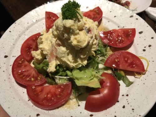 ポテトサラダは玉子たっぷりでたまりませんね~!なんとフルーツトマトもつけてくれました~!トマトがこれまた甘くてたまりません!