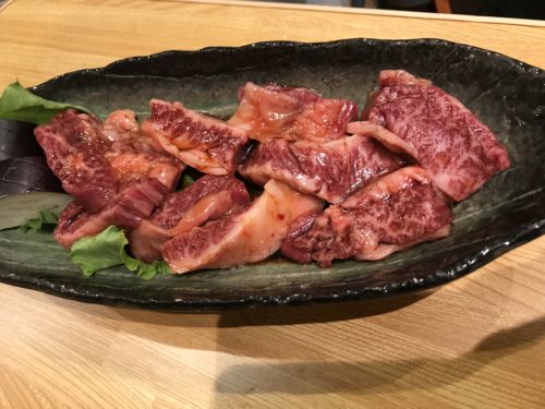 この年齢になってくるとサーロインとかロースとかあまり食べれなくなってきますよね~。赤身が最強になってきます。すると本日のおすすめに赤身祭りとありました!いろいろな赤身の部分を盛り合わせてくださるそうです!これはいいですね~!登場した赤身がこれまた立派!超おいしそう!一つずつ丁寧に焼いていきます。めちゃめちゃおいしい!いくらでも食べれてしまうほどのおいしさ!本当にみんなでお祭り状態でワッショイワッショイ口にほおばりました!