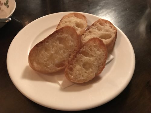 KAWASAKIさんではパンやウィンナーなどもありますよ~。まずはパンからいただきます。マスターが切り分けてたっぷりバターをぬって焼いてくださいます。ウィスキーを飲みながらパンを食べるってあうのかな~と思いますが、ぜんぜんあいますよ~!