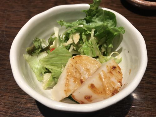 生ビールで乾杯して先付のホタテをいただきました。とっても柔らかくておいしい~!