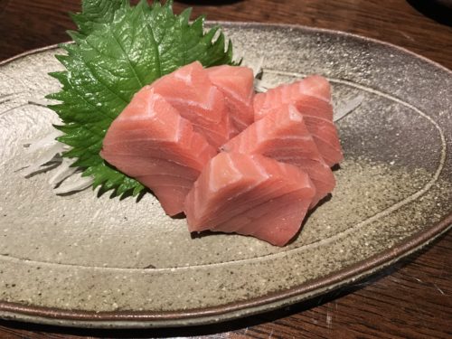 まずはまぐろのお刺身をお願いしました!もうめちゃめちゃおいしい~!トロのいい部分ですね~!とってもおいしい~!