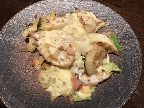 とろろ納豆焼きをいただいて、続いてれんこんチーズもいただきます。チーズがたっぷりで超おいしいです!たまらない~!