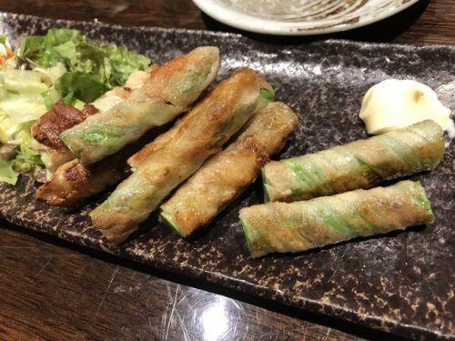 太アスパラを豚巻きにしてもらいました!普通のサイズより倍くらい大きい!大きいからといっておいしい保証はないですが、さすがはしんご!めちゃめちゃおいしい~!あっという間にたべきっちゃいます!