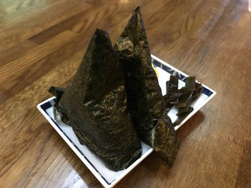 そこにまずはおにぎりが登場しました~!大きな海苔で巻いてありますよ~!あ~懐かしい味です。とってもおいしいです!