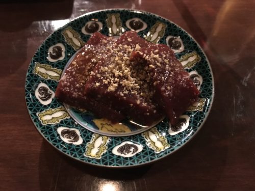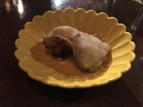 知人の方が持ち込んでくださった赤ワインをいただきながらつづいてシマチョウです。もう脂の甘味と旨味がハンパない!これも本当においしい!