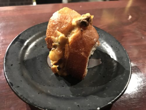 この牛マッシュを作っているところをみているともう早く食べたくて仕方がないっていうくらい魅力たっぷりです。みたことがないくらい大きなマッシュルームにたっぷりのチーズ!本当に最強です。この牛マッシュを専門店でやったら絶対に流行りますよ!間違いなし!大将やったらいいのに~!笑