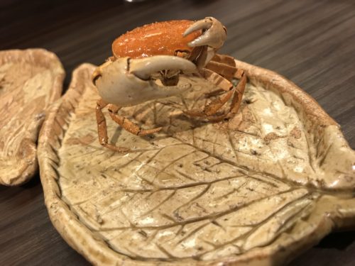 沢蟹もいただいちゃいました~!ちょっと恥ずかしかったみたいで顔を隠しています。笑