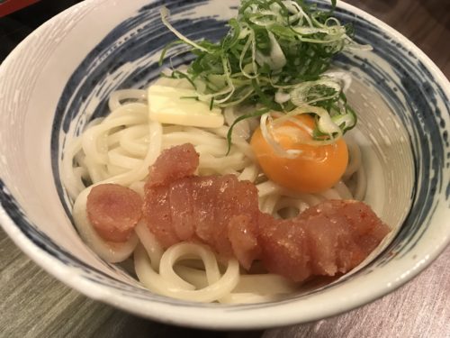 最後はうどんをいただきます。一つは梅とろろ昆布うどん!もう一つは釜玉明太バターうどんです。どちらも超おいしい~!