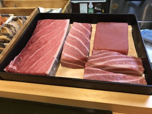あらたさんはいろいろな仕入れのルートを研究されています。もちろん東京の築地からも入ってきますよ~!最高の素材をいれてくださっています。毎年築地で初競りを高値で落としたというニュースが話題になりますがそちらとも取引があったりされるんですよ~。すごいですね!