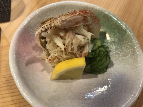 ということでもう一つ残っていた毛ガニをつまみにしてもらいました。これがめちゃめちゃおいしい~!土佐酢でいただきました!毛ガニってあまりいただく機会はないのですがいただくとめちゃめちゃおいしくってまたすぐ食べたくなっちゃいます!
