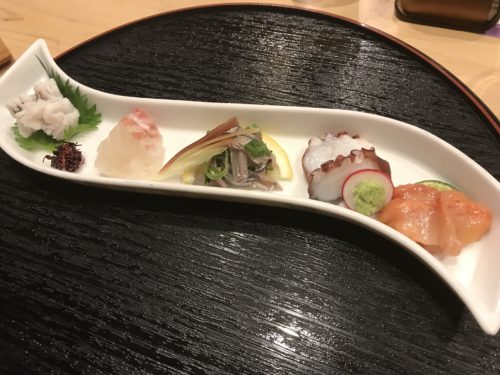 お刺身が登場しました!この日はコイワシが入っていました~!解禁されて間もなかったのでうれしいですね~!旬です!タコもおいしいし、大好物の赤貝もとっても甘くておいしい~!