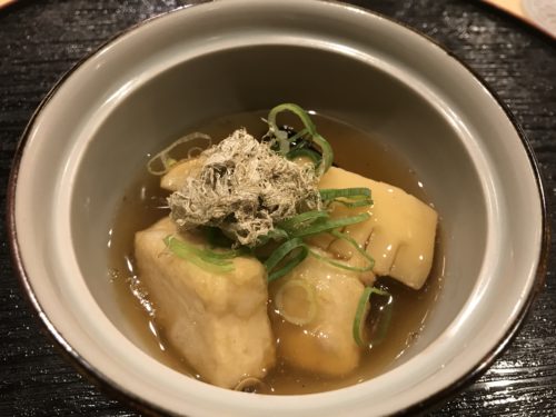 タケノコの炊き合わせがあんかけで登場しました。このタケノコがシャキシャキしてこれまたとってもおいしい~!最高ですね~!上にのっているとろろ昆布もきいています~!
