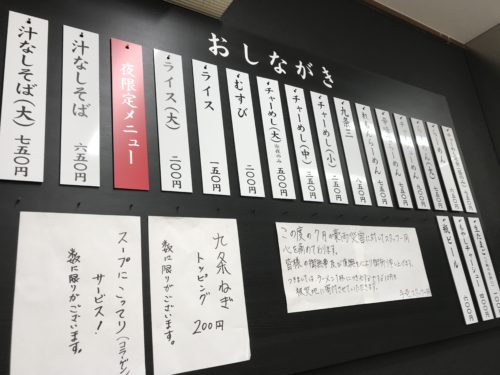 まずは隠れメニューのレモンチューハイをお願いしました!メニューにのっていないそうです!メニューをみながら何をいただこうかな~と。すると夜の営業のみ味わえる餃子があったのでそちらともやしチャーシューをお願いしました!