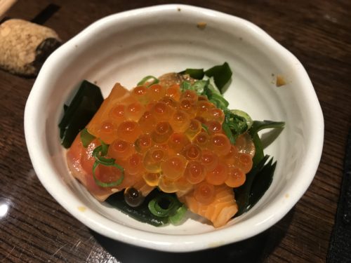先付はホタテ!めちゃおいしい~!他の方はサーモンといくら!親子でした!笑