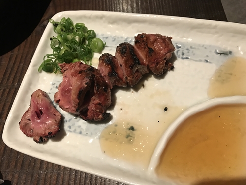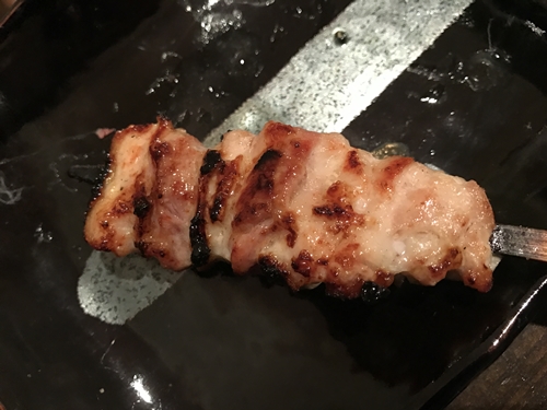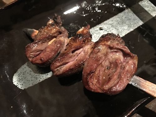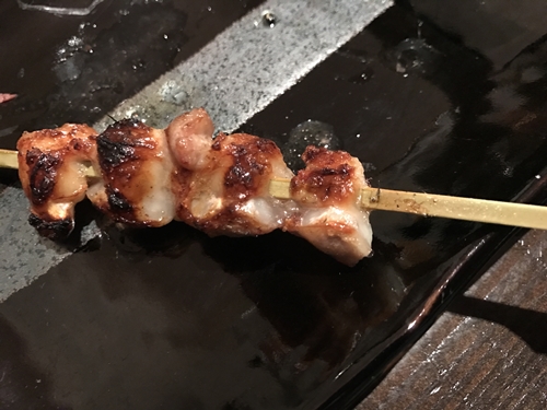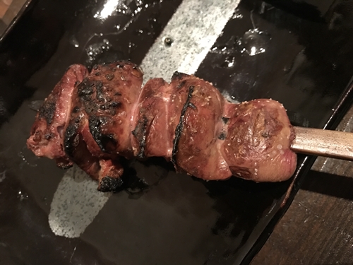 ここで串が登場しました!まずはハツから!心臓ですね!心臓やせせりをいただくと焼き鳥に対する思いが伝わってきますね~。このハツの丁寧な下ごしらえがこの切り口から想像できますね。しっかりと血抜きがされていますね~!もうめちゃめちゃおいしいです~!