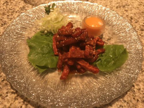 ユッケも登場しました!ふるさとさんは厳格な審査をへて公式な設備をもっていらっしゃるので手ごろなお値段で和牛のユッケがいただけちゃうんです。これだけでもすごいのにお値段がリーズナブル!