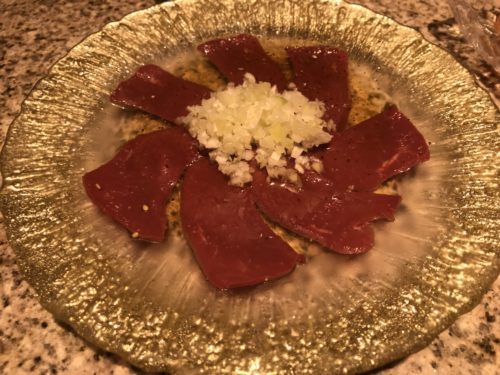 生ビールをいただきながらまずはハツ刺しから!めちゃおいしいですよ~!もちろん鮮度も抜群です!