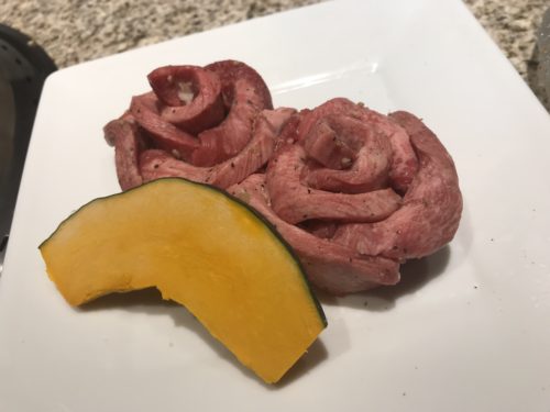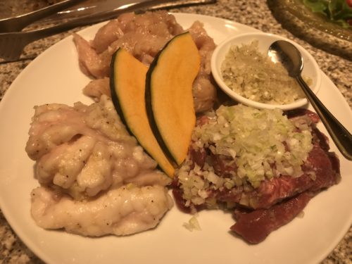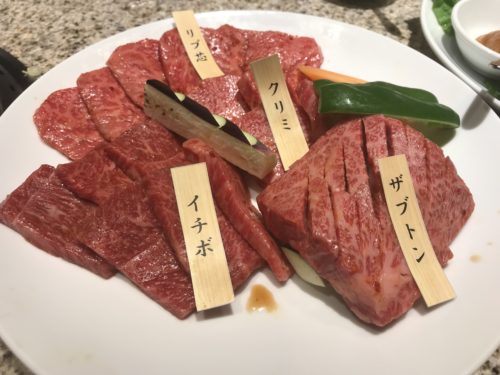 赤身中心にいただきました!まずはザブトンに上キソク!キソクとはハラミの部分だそうです!どちらも甘くておいしい~!脂がいいアクセントになっています。本当に甘い!