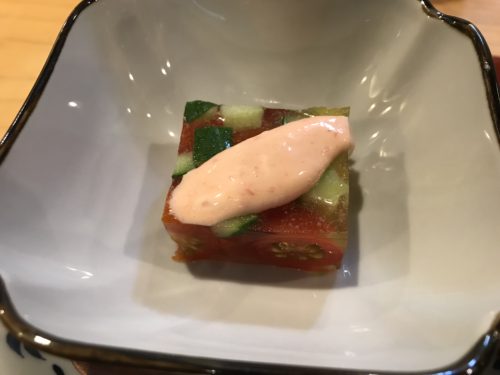 初夏だったのでトマトとキュウリのジュレが登場しました!こういう一品もしっかり作ってくださいます。おいしい!