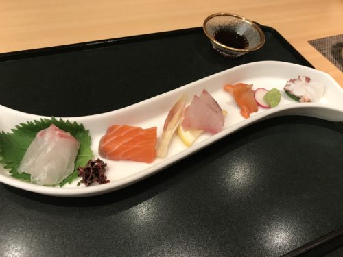 つづいてお刺身が登場しました!大好物の赤貝もちゃんと入っていました!ラッキー!タコもおいしい~!少しずついろんな種類を味わうことができるのでたまりませんね~!